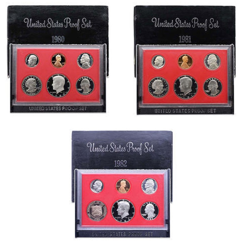 1980-1982 S Proof Set Run CN-Clad 3 Sets 17 CoinsLooking for more coins? We've got a website dedicated to coin collectors! Check outWill's Coin Cache for our full selection : )