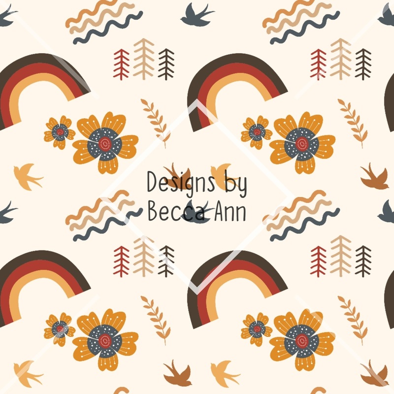 Autumn Boho Seamless File|Watering Can with rainbow|Rainbow|Set (2 files)