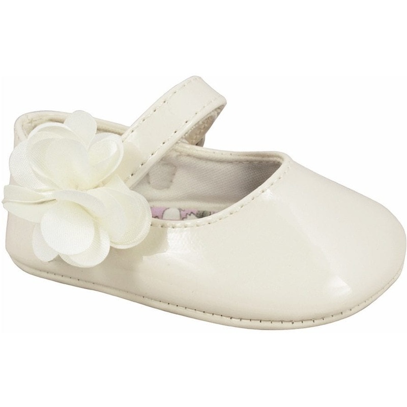 These Baby Deer Linley shoes offer a unique style with their white patent PU upper and TPR sole. Featuring a skimmer with a flower strap ornament, they will be sure to make a statement. Perfect for toddlers, the Linley shoe adds an elegant touch to any out