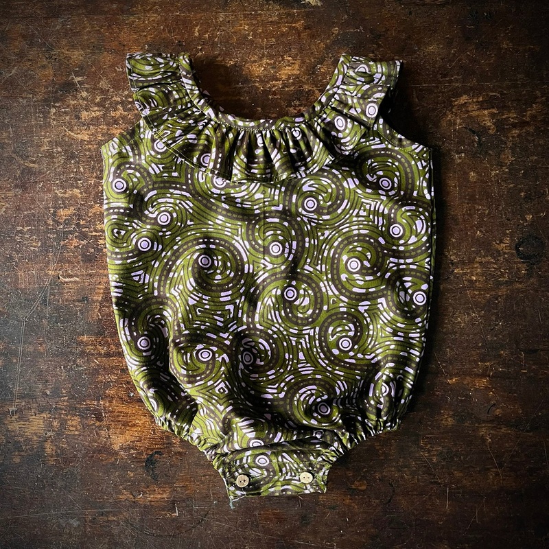 A sweet yet striking summer romper for your little one. Style with a pair of tights and a body for cooler days.Made from 100% Wax Cotton.Made in Nigeria.