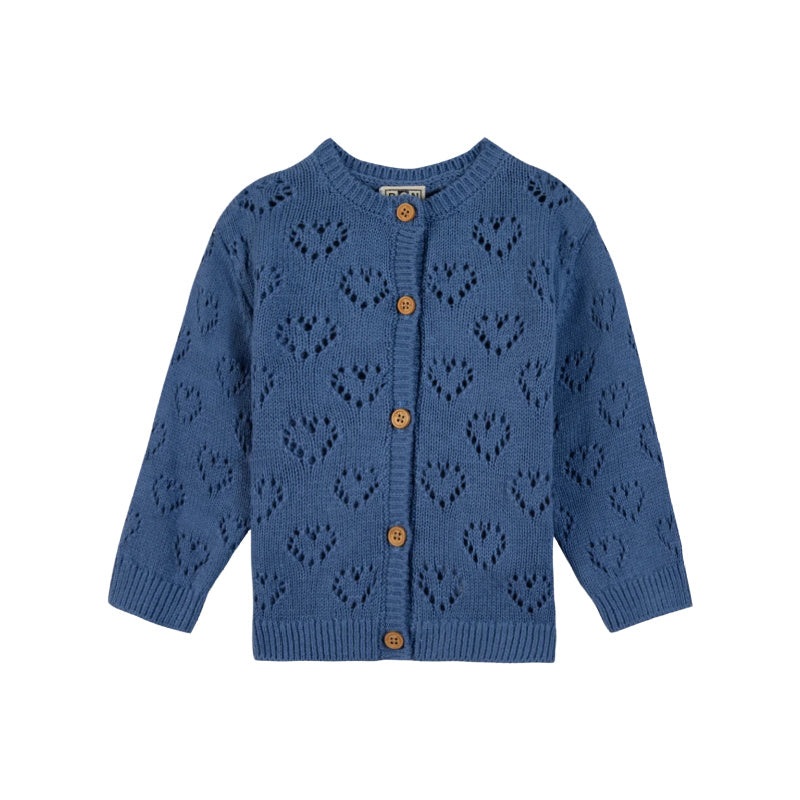 bonton baby and toddler cardigan knitted in a cotton wool blend. the cardigan has buttons worked in a vintage style, ribbed edges and an all over hearts pointelle pattern.