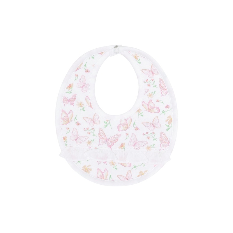 Let your little one's imaginationflywith our delightfulbutterflies print design. The intricate detailing andsoft colors capture the essence ofplayfulness and curiosity.This baby bib is helpful for your little one due to its easy snapback closure. The fabri