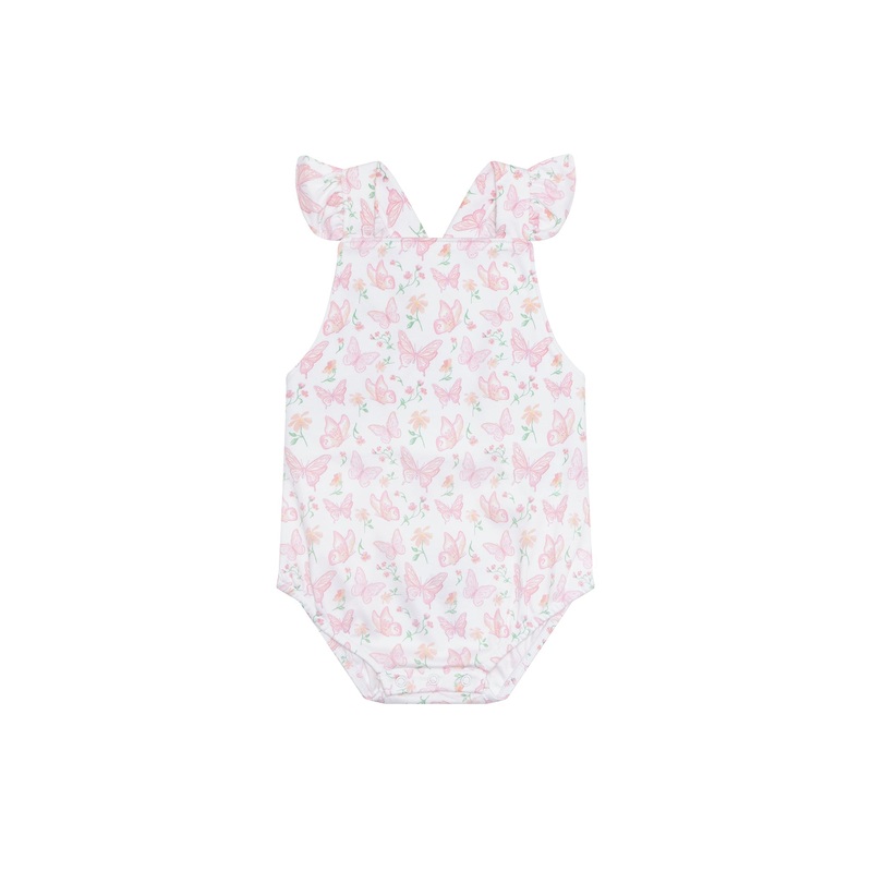 Our Butterflies Print Ruffle Bubble is designed to bring a touch of playful charm and adorable style to your baby's wardrobe.With its delightful butterflies and charming ruffles on the back, this bubble is sure to make your little one look and feel extra s