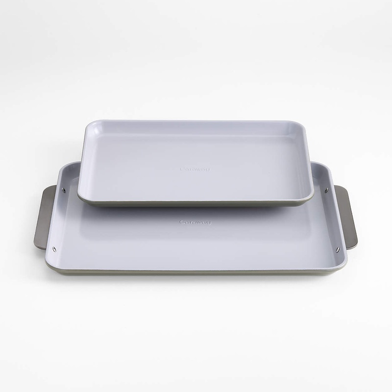 Caraway Ceramic Non-Stick Baking Sheet Duo Olive Green with Gunmetal Hardware