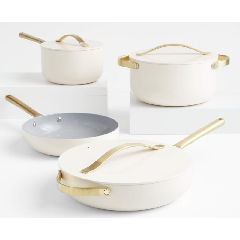 S97419921Caraway Home 7-Piece Cream Ceramic Non-Stick Cookware Set with Gold Hardware S97419921