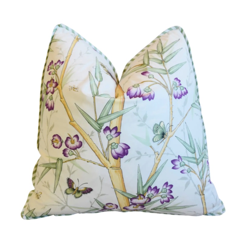 S97462612Clarence House Chinoiserie Bamboo & Butterflies Fabric Feather/Down Pillow 21 Square