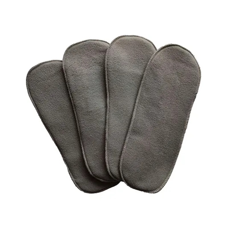 5 layer bamboo charcoal inserts feature 5 layers design, the outside 2 layers are 100 percent bamboo charcoal, the inside 3 layers are microfiber. This makes it super absorbent. Easy use and very soft machine washable and dry able. Wash before first use. It usually will take a few washes to reach its full absorbency (could be 6 washes or more) place the insert inside the nappy through the open pocket in the back liquid will be absorbed through the inner layer of the nappy to the insert more than one insert may be needed when sleeping or when necessary