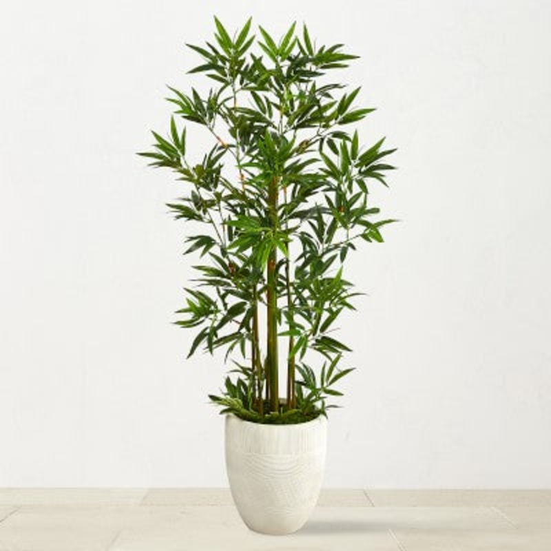 Faux Bamboo Palm Tree in White Planter, 52