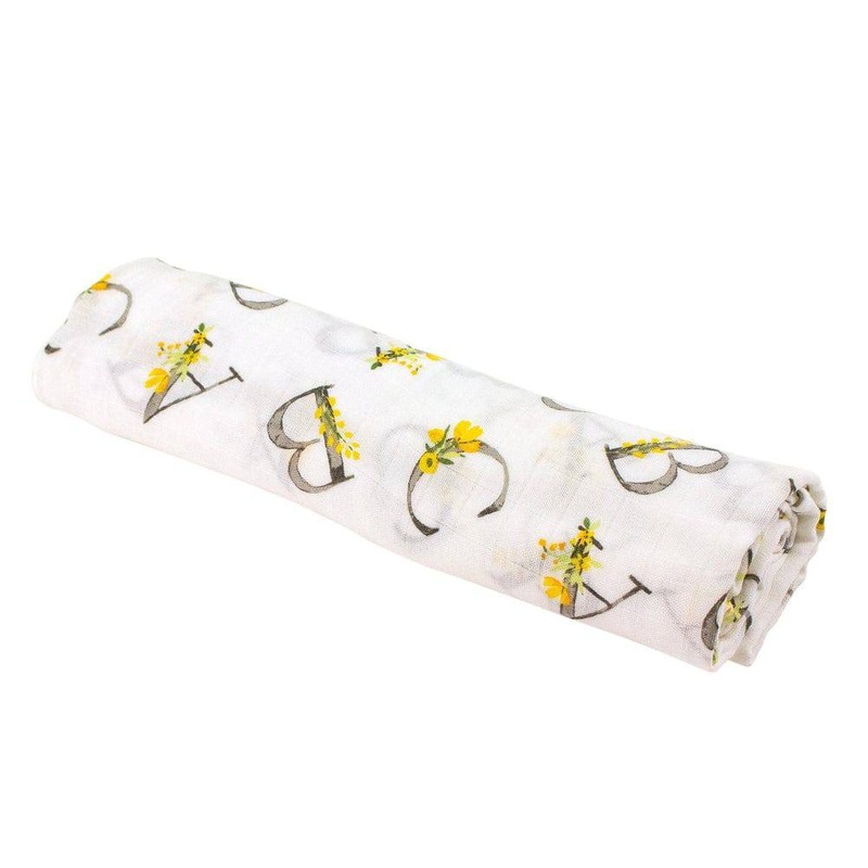 Floral Alphabet Single Oh So Soft Muslin Swaddle Blanket