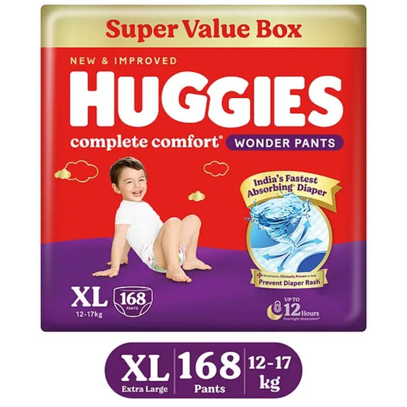 New & Improved Huggies Complete Comfort Wonder Pants - India's Fastest Absorbing diaper, Clinically Proven to Prevent Diaper Rash; Small size baby diaper pantsOur XL size diapers are designed for babies in 12 to 17 Kgs weight range; Find the best fit for y
