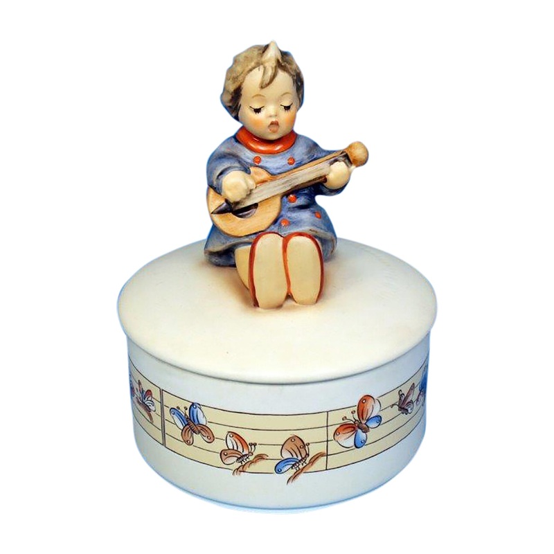 Joyful - Candy Box - IV/53This candy bowl features a bgirl in a blue dress and playing a lute..Height: 6"Year Issued: 1996Year Retired: 1999Designer: Reinhold Unger**Trademarks will vary. All heights are approximate.**Condition Options:With Box: Mint figur