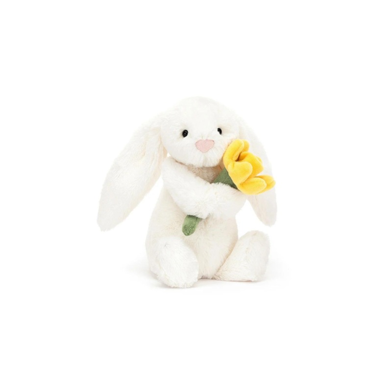 *Customization unavailable for this jellycat due to its size (small jellycats are customizable with a bib but this has a daffodil hence lack of space)Bashful Daffodil Bunny is a sweet softie who has found a beautiful bloom! This double-cream bunny holds th
