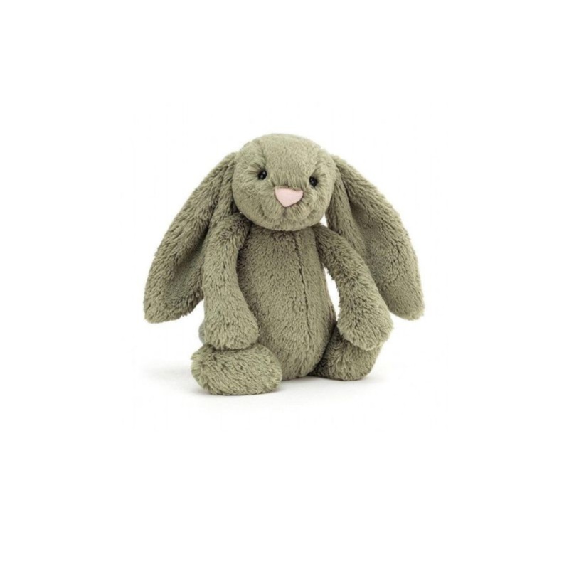 Note: For this Jellycat, embroidery is done on a bib and then tied around the plushie's neck.Shy and sweet, Bashful Fern Bunny likes to hide in the pretty green moss. This sage-soft silly has flopsy fern ears and perfect pipkin paws. A gentle friend who lo