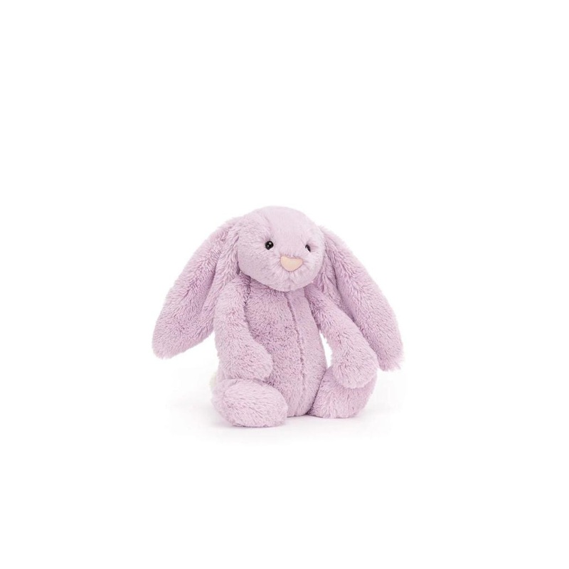 Note: For this Jellycat, embroidery is done on a bib and then tied around the plushie's neck.Bashful Lilac Bunny is very attentive - she tilts her head to hear all the best tales and readies her yummy-soft purply ears. A delightful lassie in flower-bright