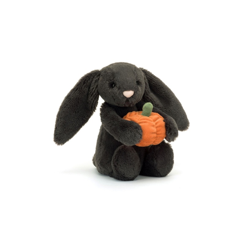 Bashful Pumpkin Bunny has brought a gift a ruched orange pumpkin with a green suedette stalk! This liquorice bunny has a matching silky bobtail, long lop-ears and a tiny pink nose. A helpful pal for trick-or-treaters!Dimensions:18cm x 9cm x 8cmSitting Heig