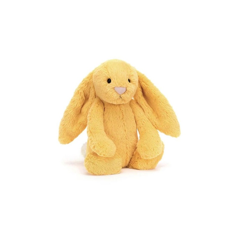 Banishing gloom in every room, it's Bashful Sunshine Bunny! Gorgeously golden in custard yellow, this scrummy-soft scamp is so, so snuggly. Tickle those lovely lopsy ears, boop that pink nose and flop together on warm, lazy days. Everyone needs a boost of