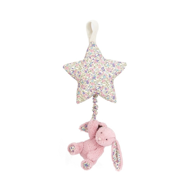Product DetailsSailing in on a soft little star, it's the Blossom Tulip Bunny Star Musical Pull. Our stargazing bunny is gorgeously grabbable, so little hands can reach and tug. To go with those vintage blossom ears, the pull plays the timeless 'Hush Littl