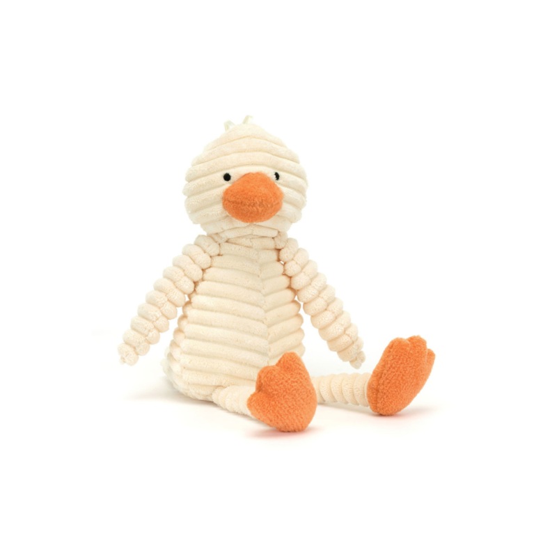 Flip and flap and say hello to adorable Cordy Roy Baby Duckling! A nubbly, nuzzly buttercream cutie, this little scamp is newly hatched! Little hands will love the texture of her scrumptious cordy fur, and her golden beak and squashy feet are perfect to fall asleep on.
