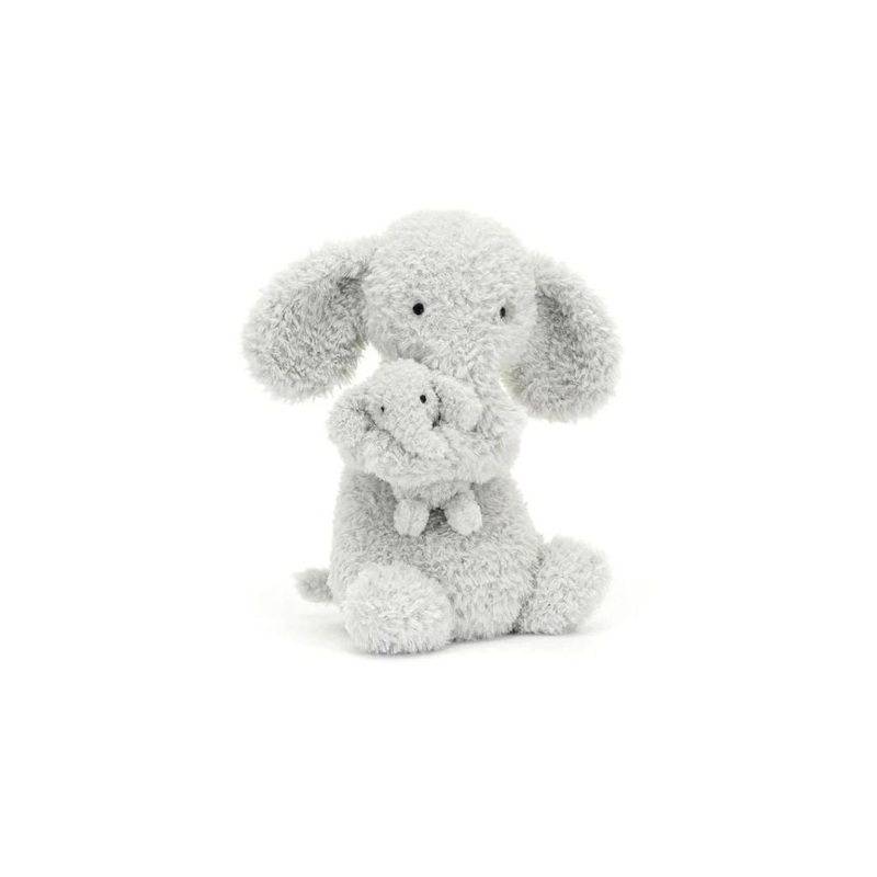 *Customization Unavailable for this Jellycat due to material & sizeHuddles Grey Elephant is such a sweet gift for parents and tots alike. Cuddling their own tiny baby, this dove-grey elephant is wonderfully ruffled, with round, folded ears, a gently curved