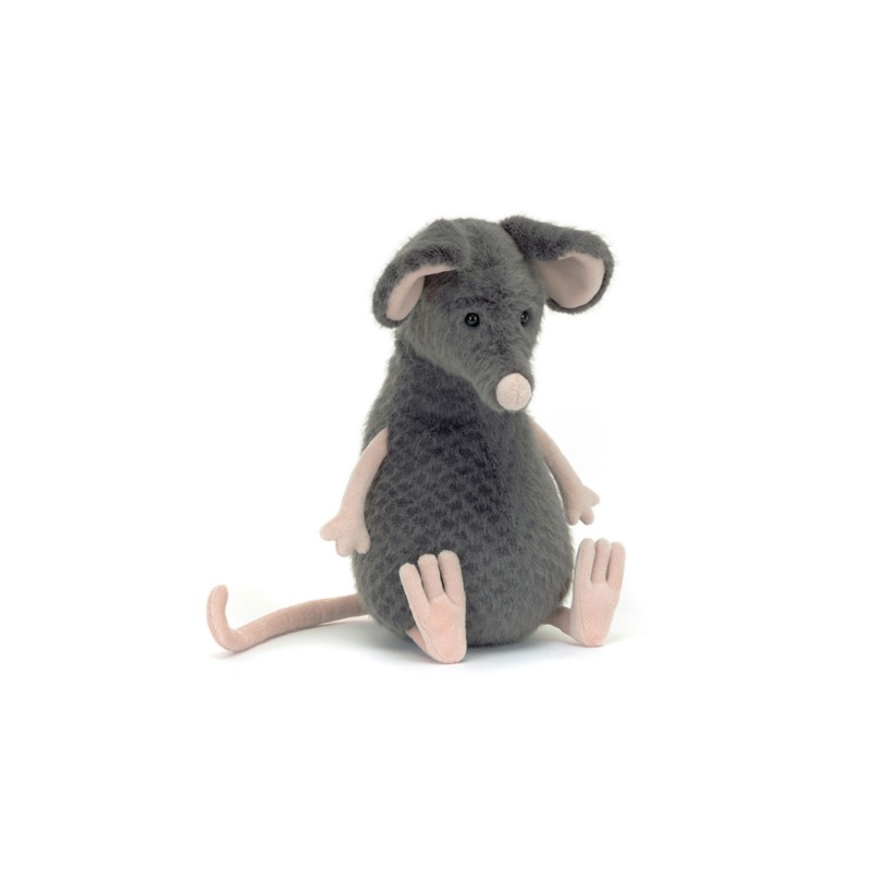 Lachlan Sad Rat needs a good friend. Gloomy but gorgeous, with rounded fold ears, this podgy rat has blue-grey fur and a very chunky snout. With a bobble nose, embroidered feet, waggly arms and a mighty tail all in beautiful soft pink Lachlan won’t be lonely for long!