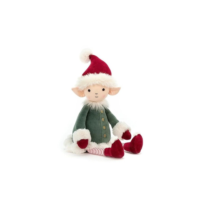Leffy Elf is a helpful pal, making toys and games for Santa. It's cold at the North Pole, so Leffy's cheeks are as red as those boots and candycane socks! They go so well with that fine grassy coat, mittens and gold stitched buttons. But why does an elf ne