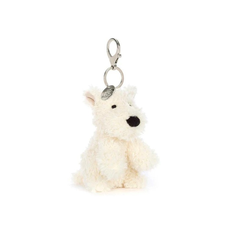 This charming chap is Munro Bag Charm. With a little charcoal nose for adventure and the softest, white curls around, this wee pooch is the perfect accessory for your bag.Dimensions: H11 x W6cm.Recommended for 3 years + due to small parts.Sponge clean only