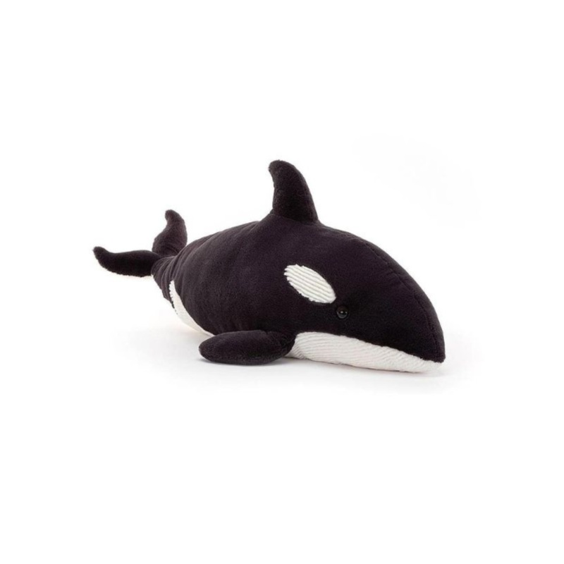 *Customization Unavailable for this Jellycat due to material & sizeOllivander the Orca is truly extraordinary! A black-and-cream boss in bold inky blots, with a fine dorsal fin and a rumpled cord tum, Ollivander wanders all over the ocean! With a striking