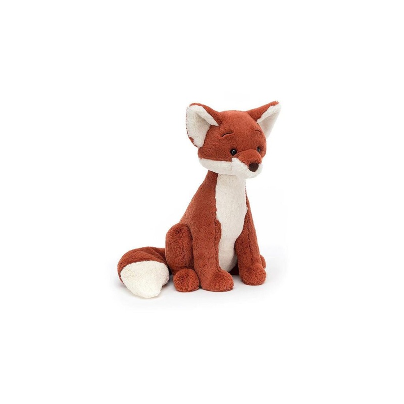 Keen and curious, Quinn Fox is a huggable rust-red cub! Beautifully detailed with a huge cuddly tail, vanilla-cream accents and chunky-soft paws, Quinn brings the woodland breeze indoors! A gorgeous addition to any nursery and a firm forest friend for scrambly scamps.