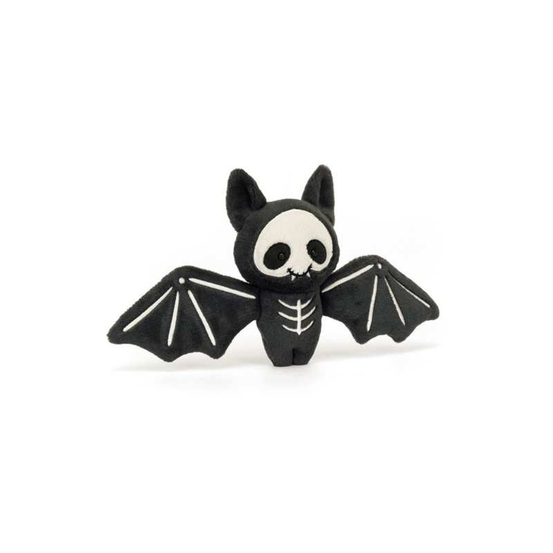 Even skeletons need Halloween costumes! Meet Mummy Bob an undead softy in cream fur bandages, with delicate embroidered stitches. Look closely to see Bob’s shiny eyes peeking out from all those layers!