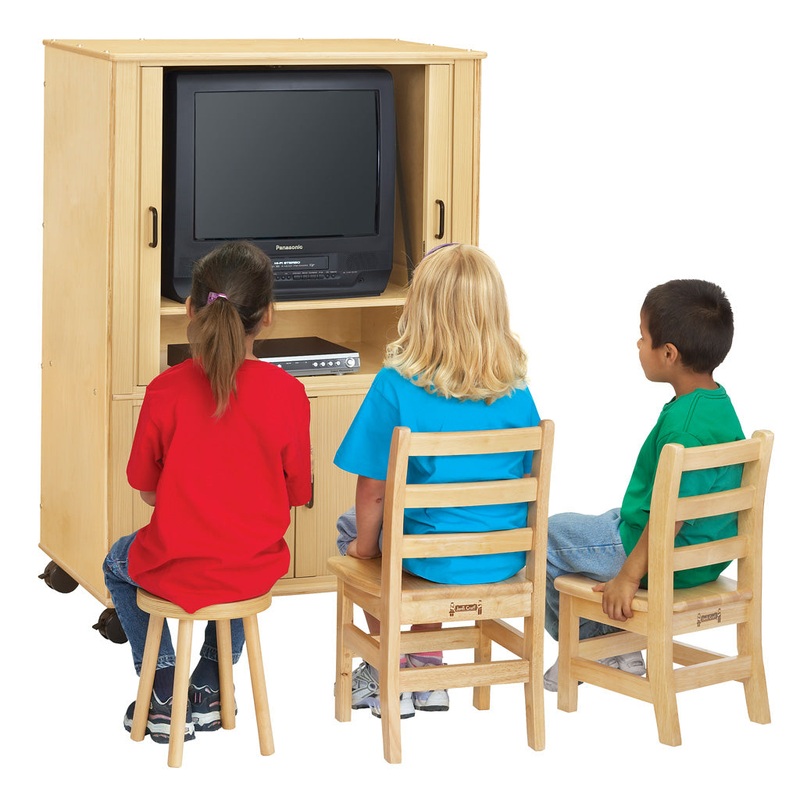Thermo-formed tambour doors give this cabinet its European look. Doors lock and slide safely back and out of the way. Adjustable TV opening measures 24" wide x 19" deep x 18" to 23" high. Bottom door can remain locked while top is open. Grommets for cord m