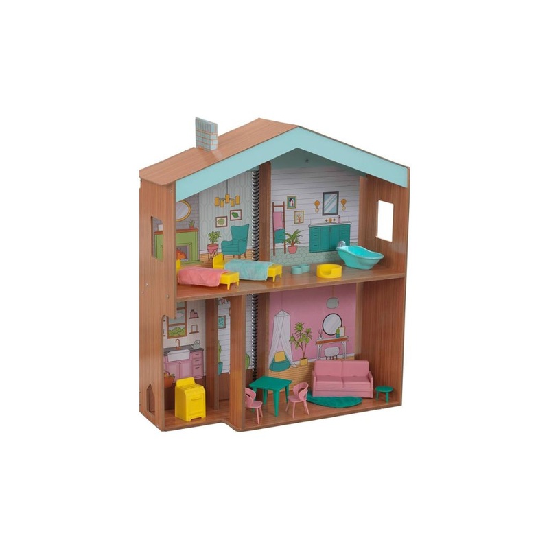 The KidKraft Designed by Me Color Dcor Dollhouse allows budding artists and decorators a new way to create, learn and grow as soon as the box is opened! With a variety of coloring backgrounds, imaginary worlds are ready to come to life! Use the included coloring book and markers to provide walls with your own personal touch. A variety of mod furniture is ready to welcome collectibles and dolls alike! Art and toys merge for a creative new way to play in the Color Dcor Dollhouse!