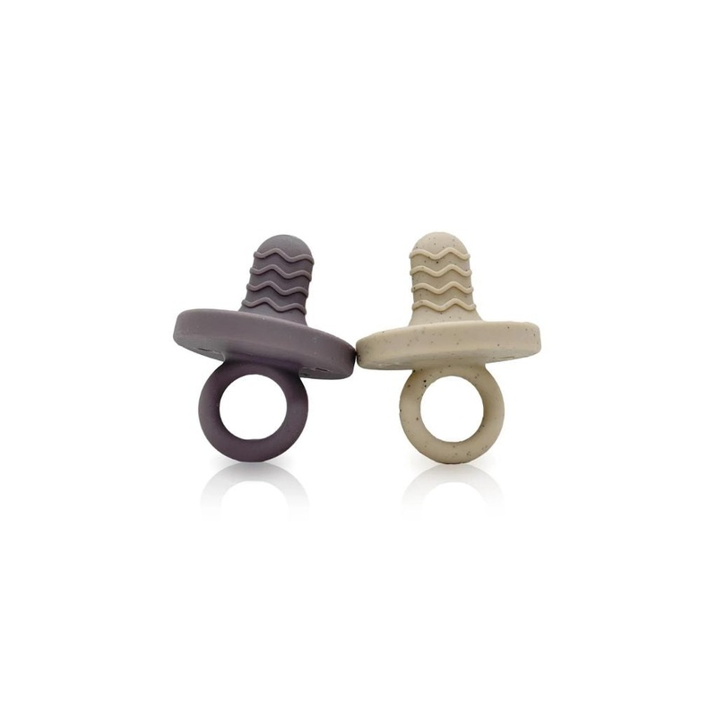 Meet the perfect accessory for every teething child! While this teether may be shaped like a soother it is designed to function as a ring teething accessory.The soft textured teething surface massages and stimulates sore gums!Sold as a pack of 2 teethers M