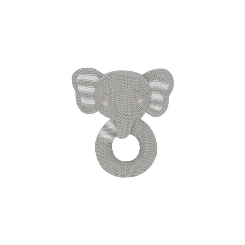 The adorable Ella the Elephant ring rattle is perfect for little hands. Made from 100% cotton knit, she features a soft jingling rattle to keep the baby entertained when out and about. Irresistibly cute and adorable, Ella the Elephant features exquisite de