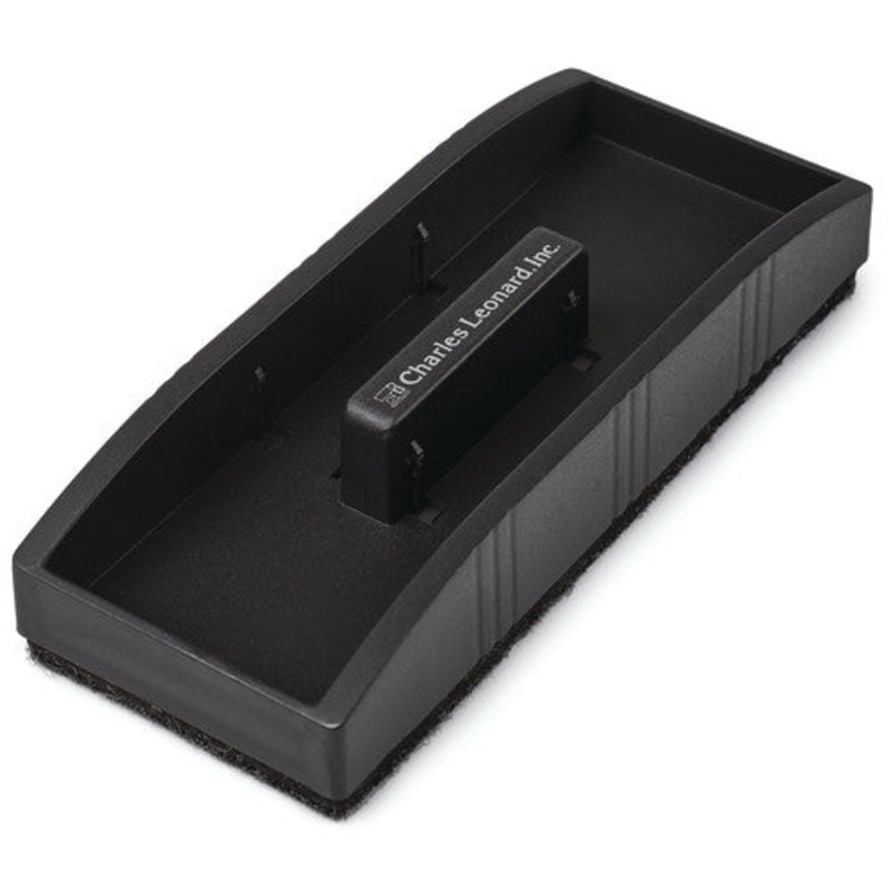 Sleek space-saving design features a storage space for two barrel style markers (not included.) Eraser clings securely to any magnetic surface and removes markings from all dry erase surfaces.