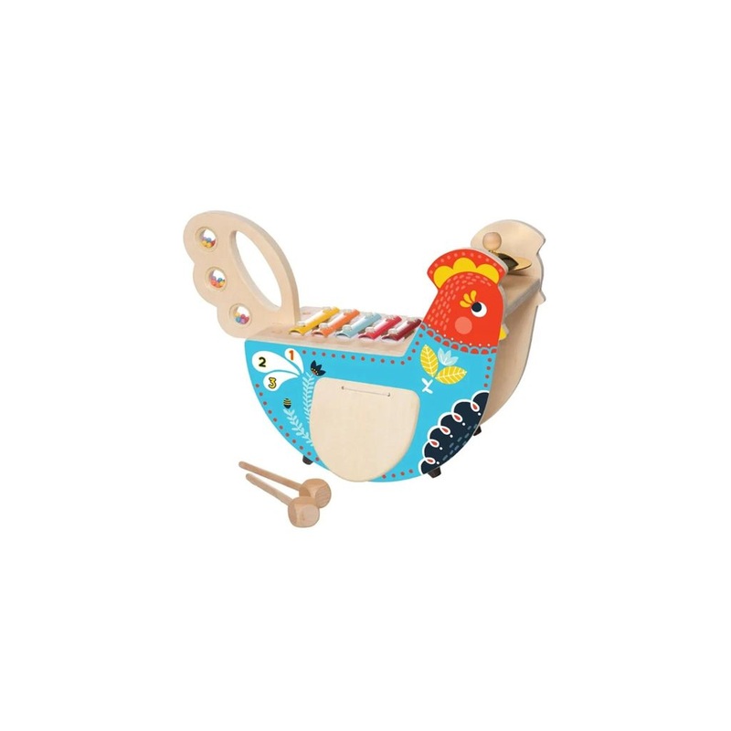 Get your jam on! The Musical Chicken is loaded with musical fun! Features five instrument attachments and activities to keep little ones busy. Musical instruments include: 1 cymbal, 5-bar xylophone, 1 maraca tail, 2 clacking wings that double as drums with mallets that store back by the tail. Parents editors named itBest Musical ToyBest of Toy Fair. Thewhole thing is cute enough to leave sitting out for all to see.