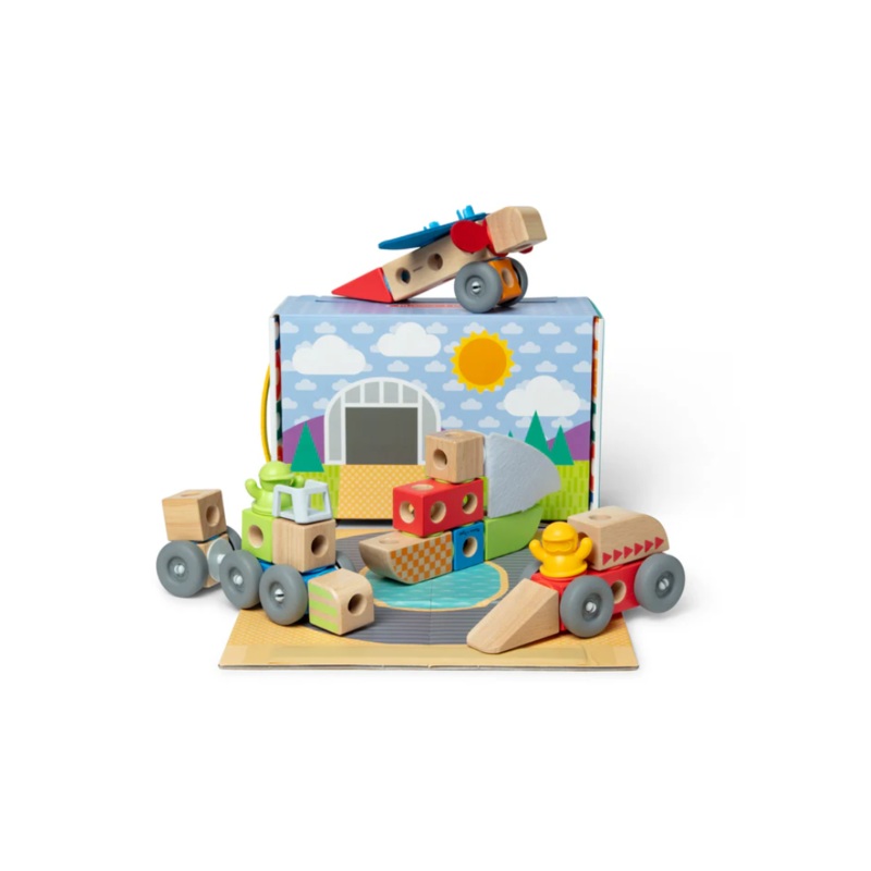 Melissa & Doug Blockables are connectable, stackable, and playable solid wood building blocks, perfect for little hands and big imaginations; special connectors let kids 2 and older easily snap together smooth, colorful blocks to create fun vehicles to pla