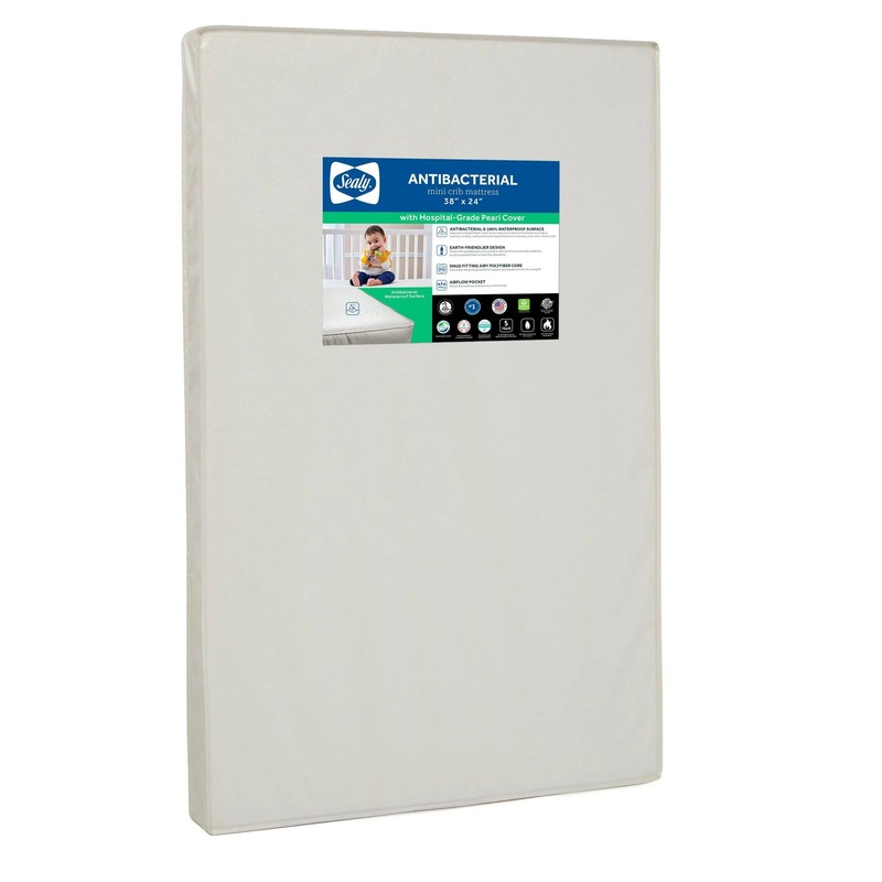 The Sealy Antibacterial Mini Crib Mattress is the best, most trusted brand for baby's sleep. Proudly made in the USA with certified materials, Sealy mini crib mattresses measure 38x24 inches to snugly fit inside mini cribs and are 2" thick to promote safet