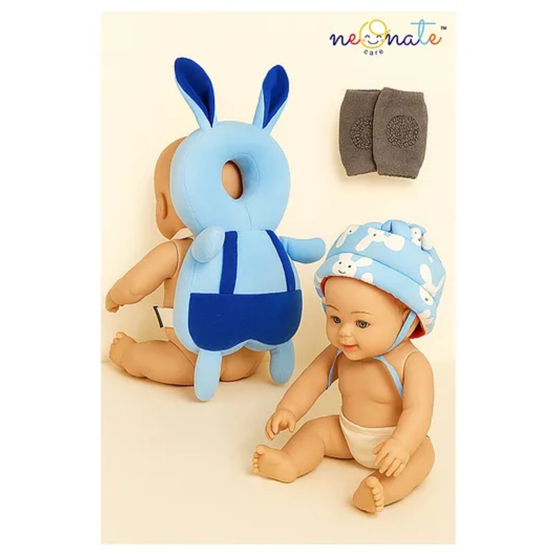 NeonateCare Baby Helmet(Blue Smiley) Baby Head Protection Cushion Backpack(Blue Rabbit) With Knee pad(multicolor) pack of 3 utility items