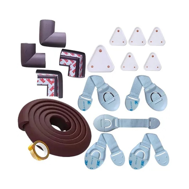 COMPLETE SAFETY KIT All-in-one baby proofing set includes 2-metre edge guard, 4 corner guards, 5 socket guards, and 5 child safety locks EDGE PROTECTION 2-metre long foam edge guard cushions sharp furniture edges and can be easily cut to desired lengths fo