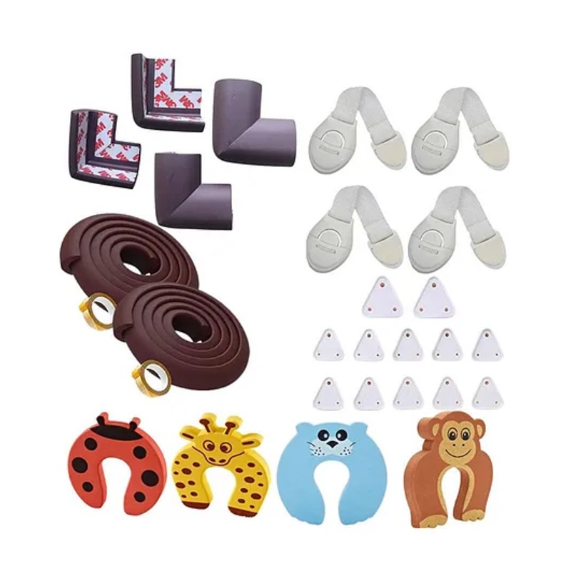 • COMPLETE SAFETY KIT All-in-one baby proofing set includes 4-metre L shape edge guard, 4 corner guards, 4 door stoppers, 10 socket guards, and 4 child safety locks