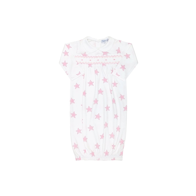 Is now available in three charming colors: gray, pink, and blue! This dreamy gown features a playful print of stars against a soft, soothing background, while the long sleeves and elasticized bottom ensure a snug and secure fit, perfect for a peaceful nigh
