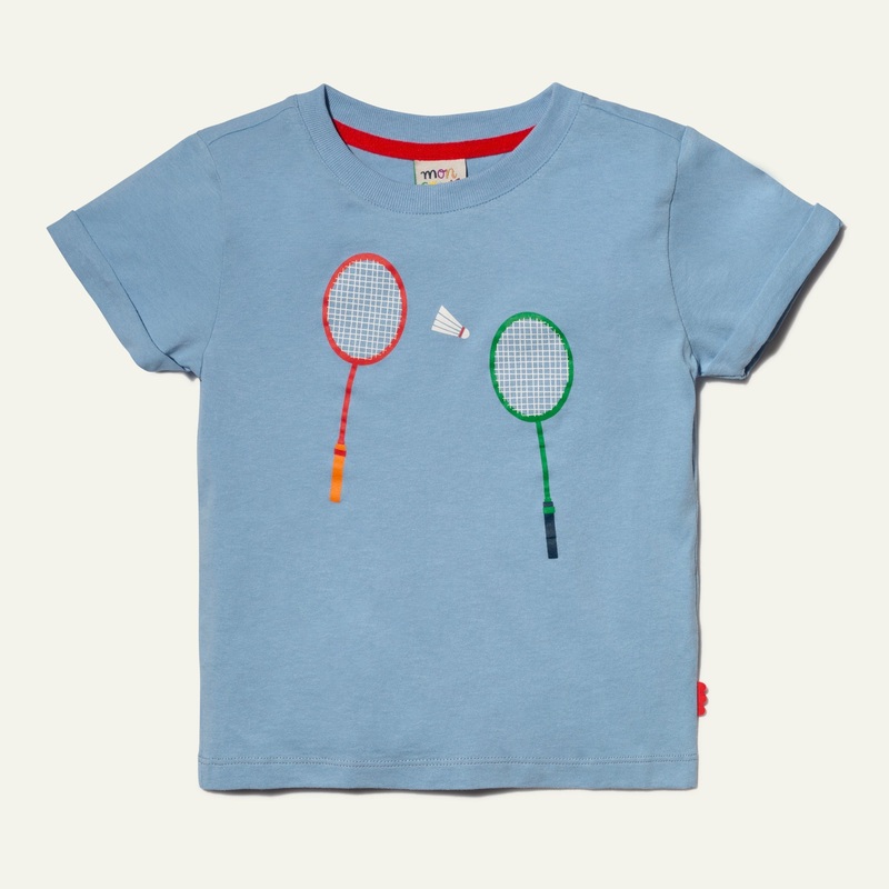 Our soft jersey t-shirts are sustainably made with up-cycled cotton using watercolor print and non-toxic inks. This badminton print is sure to rally little ones for a day of play! Pair it with the coordinating badminton short for an easy game, set, match!