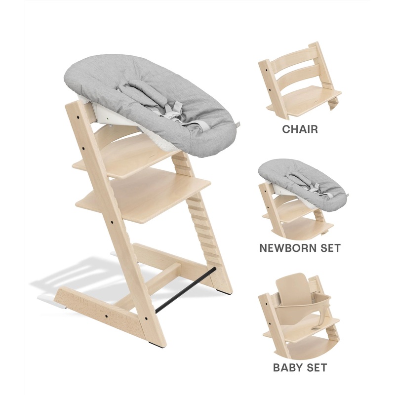The chair that grows with the child - A Chair For LifeThe Tripp Trapp chair + Baby Set and Tripp Trapp Newborn Set is our 3-in-1 solution, bringing your newborn to the dining table and closer to the family. It then seamlessly transitions to support sitting