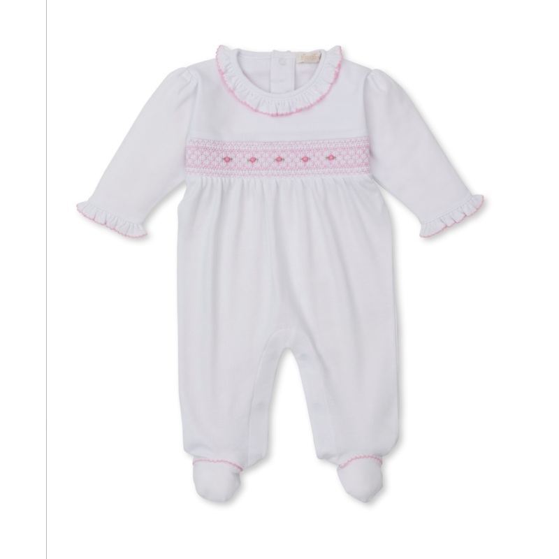 White And Pink Footie with Hand Smocking