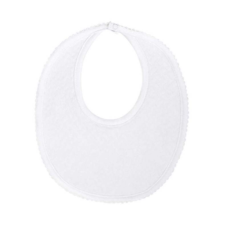 Our Basket Weave Baby Bibis made of 100% peruvianpima cotton.Comes in in three beautiful picot trim colors, Soft Pink, White or soft Blue. It has terry cotton for more absorvency.