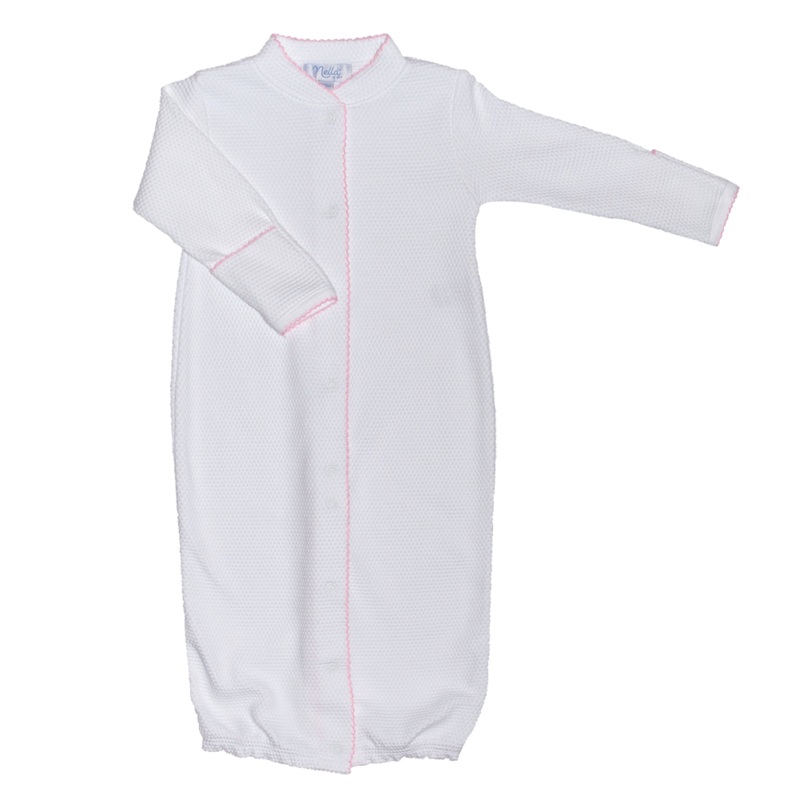 From playsuit to gown, this Nella converter is your best option for playful days and sleepy nights with your little one. Easilysnap the gown for changes or for nap time! Featuring Nella’s soft bubble fabric and long sleeves with mitten cuffs.
