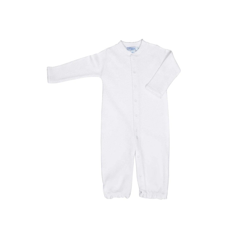 Our baby converter gown really makes a parent's life much easier! With a quick change of the snaps the converter is a playsuit for playtime. Change the snaps again and it's back to a gown for sleepy time. Made of amazing White Bubble fabric, and Picot Trim