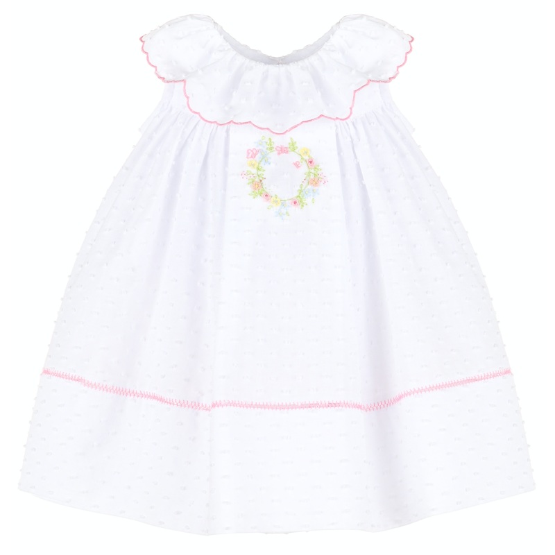 White Lawn Party Ruffle Dress With Floral Embroidery