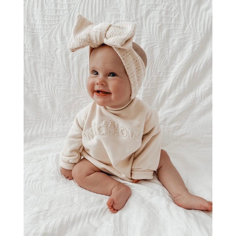 Designed to impress for your little "wildflower", this romper features a tonal chenille "wildflower" patch embroidery that adds an extra pop of style to your little one's wardrobe.Our signature oversized fit ensures comfort and maximum mobility, perfect fo