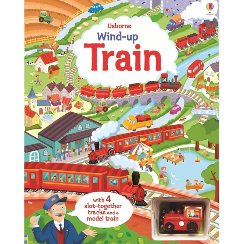 A toy and a book in one, this large, chunky board book comes with a wind-up toy steam train. Wind the train up and set in on the embedded track in each page to see it chugging along through the countryside. Each of the four tracks is removable, and together they combine to make one giant train track.